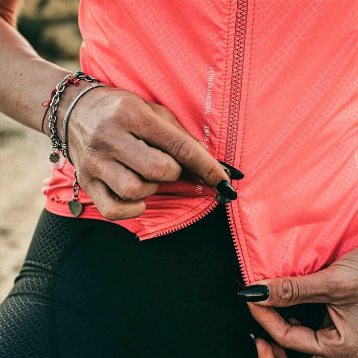 Conçues pour faciliter vos mouvements sur le vélo sans lâcher le guidon, les ouvertures d’accès aux poches ont été redessinées pour une plus grande facilité d’utilisation. Son nouveau zip YKK à double curseur vous permet d’optimiser la circulation de l’air et la température de votre corps. Si léger que vous pouvez le replier et le ranger dans sa propre poche intérieure -Gobik Pocket System-.