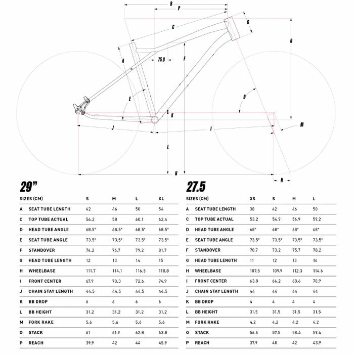 Tailles : XS, SM, MD, LG (27,5″), SM, MD, LG,XL( 29″)