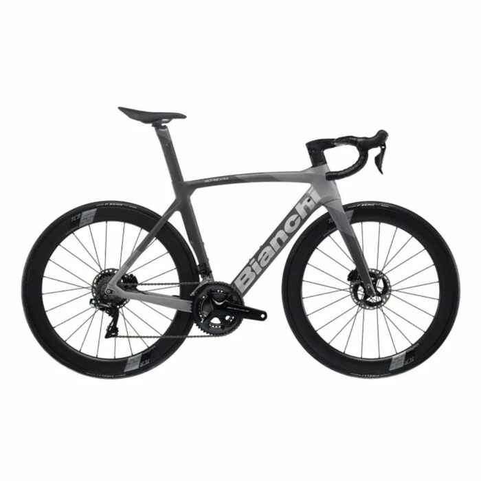Cadre : Oltre XR4 carbon w/Bianchi CV, mechanical/electronic shifting compatible, headset 1.5″, PressFit 86,5x41mm BB, Disc brake internal cable routing, flat mount calipers, thru axle 12x142mm, sizes 47-50-53-55-57-59-61cm