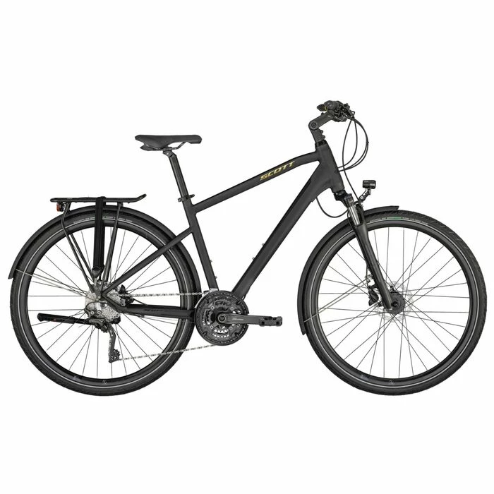 Sa transmission en 3×10 de Shimano vous permettra d’affronter tous les terrains et sur tout vos projets. Son porte-bagages Racktime est compatible avec les accessoires Snap’it pour pouvoir installer un panier ou des sacoches sans soucis. Son éclairage intégré alimenté par une dynamo situé dans le moyeu avant vous procurera une sécurité supplémentaire sans avoir besoin de penser à prendre vos lampes.