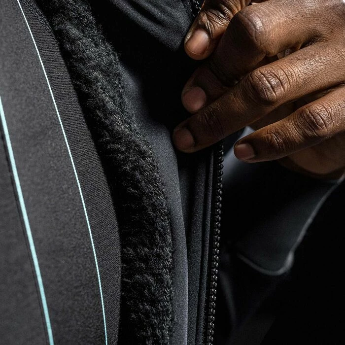 -Col haut composé de deux pièces, la pièce extérieure prolonge la structure de la veste isolante de l’eau et du vent, tandis que la pièce intérieure garantit un ajustement parfait.